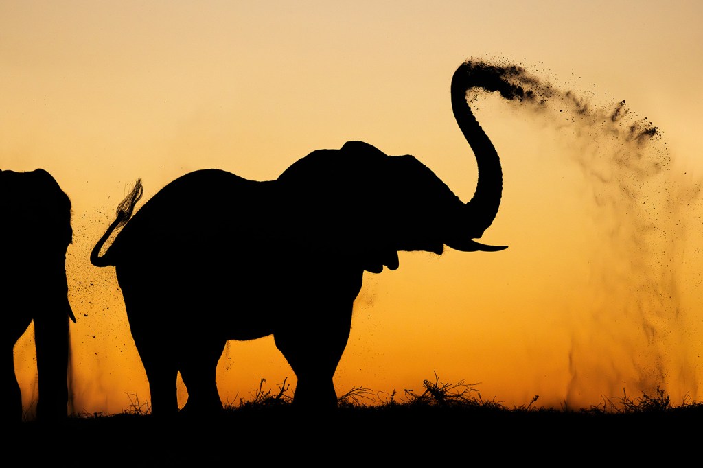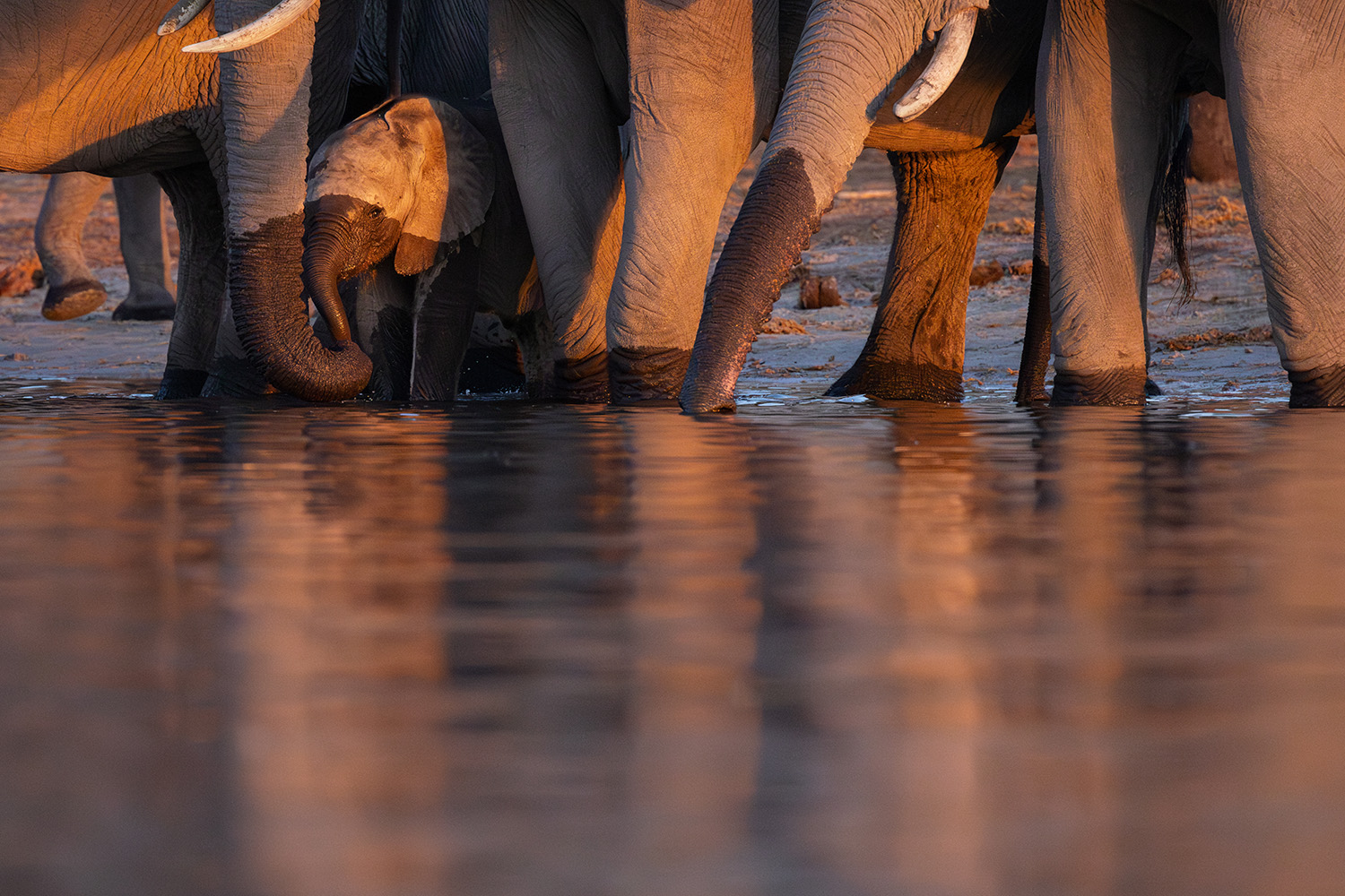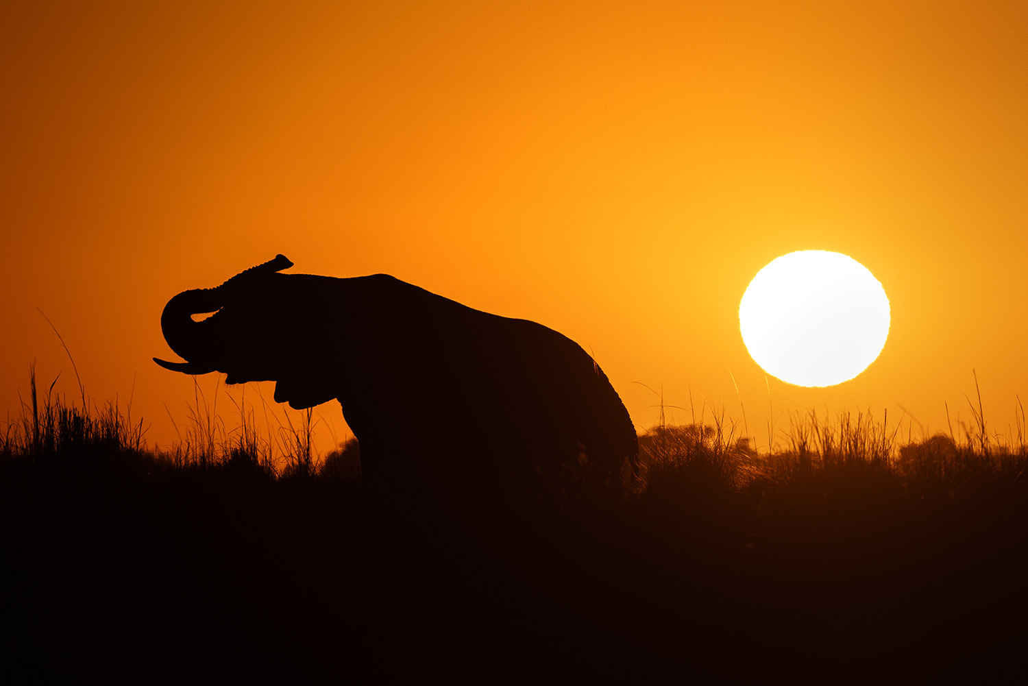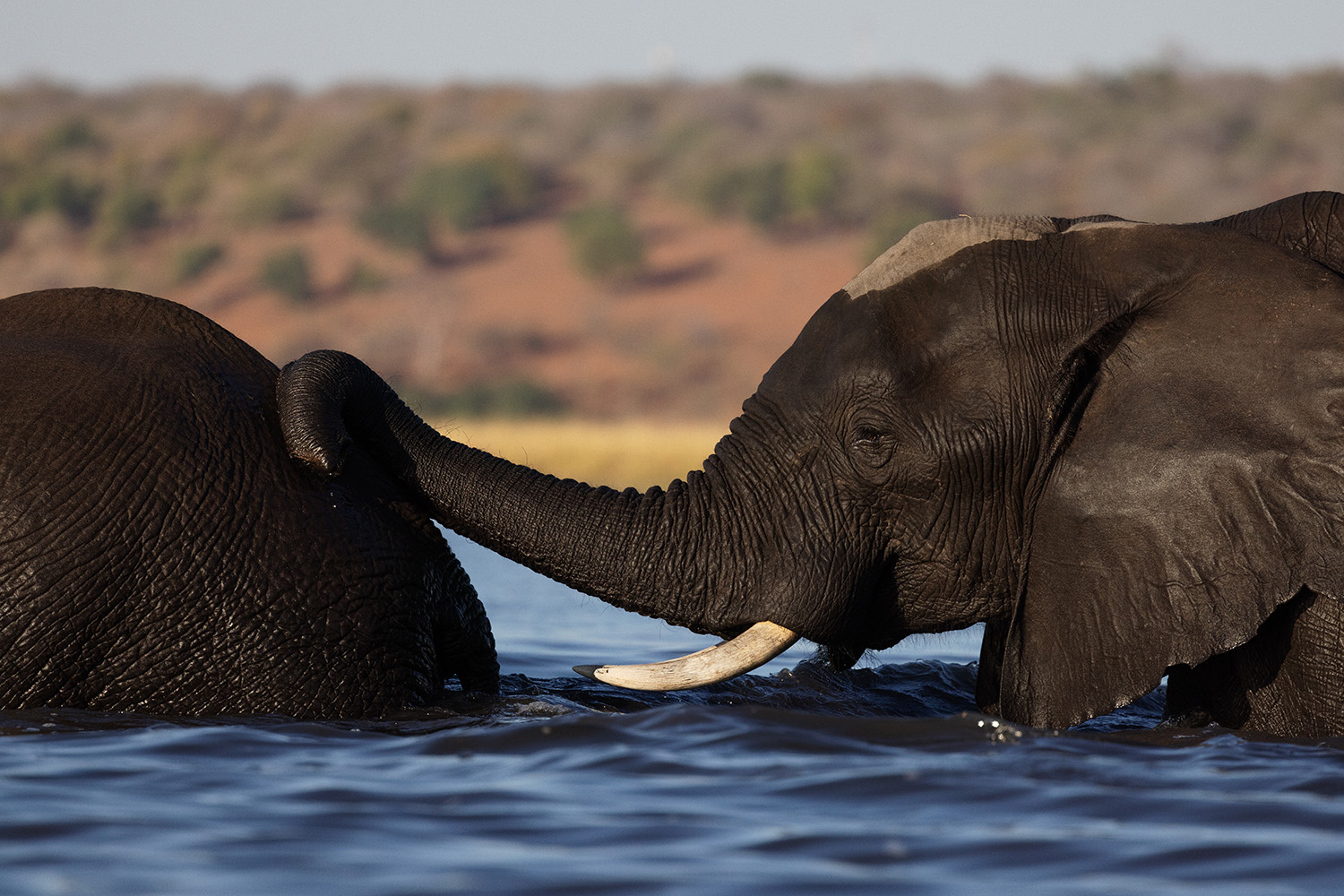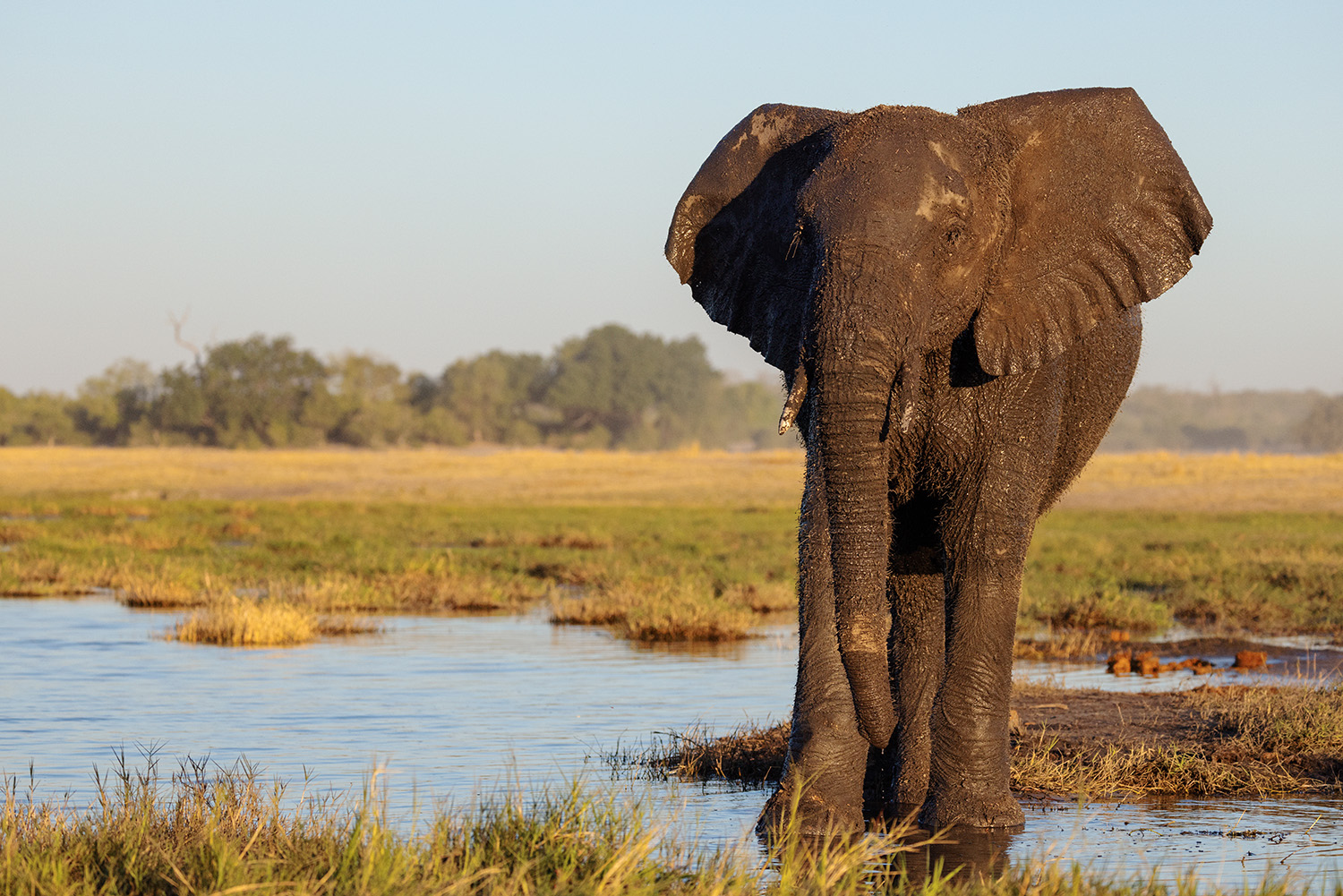 Rivers always gather life to them, and this is never truer than in a drought. As evening falls, many species descend on the depleted Chobe: lions, giraffes, eagles, buffalo, hippos, egrets. But none is as arrestingly visible as the African Bush Elephant.