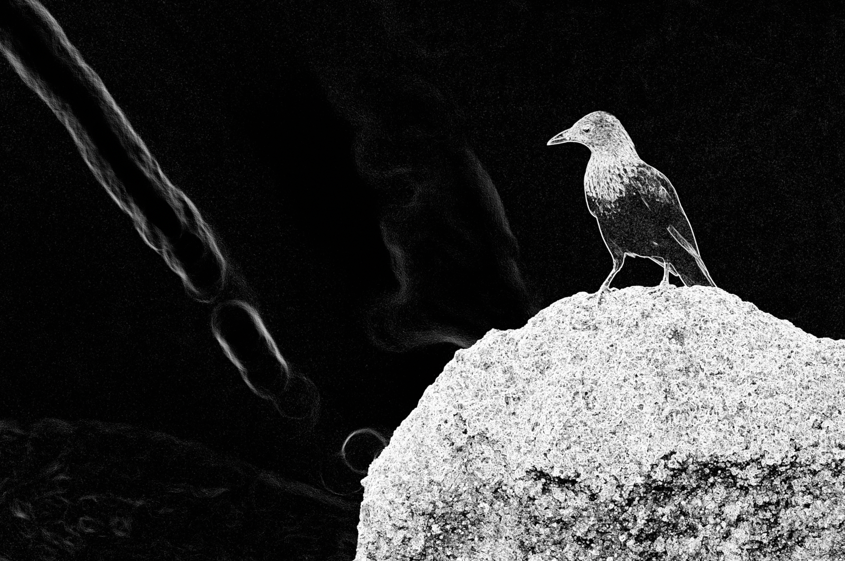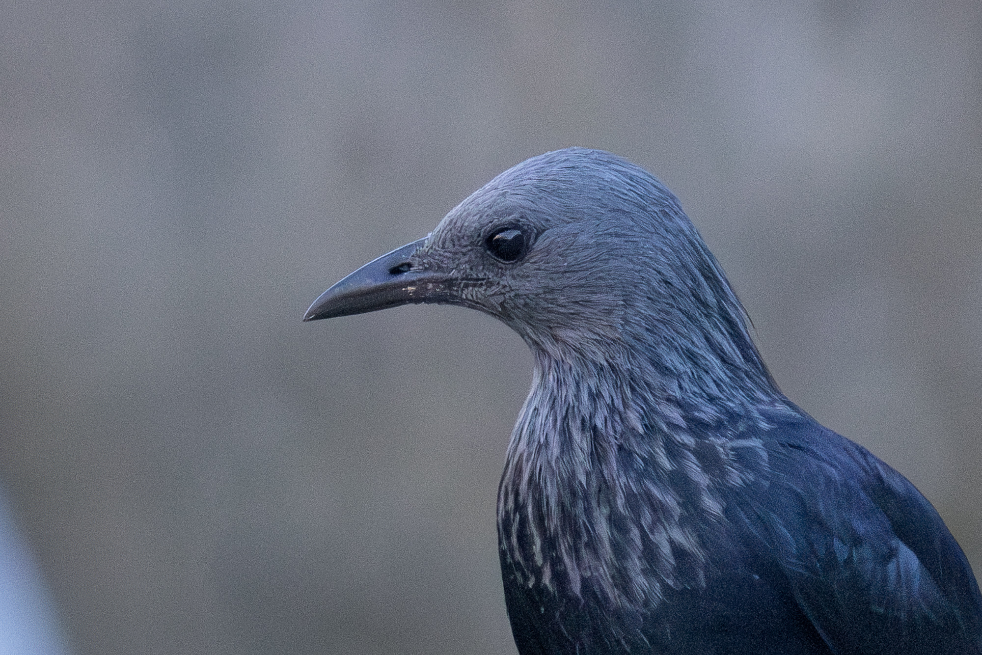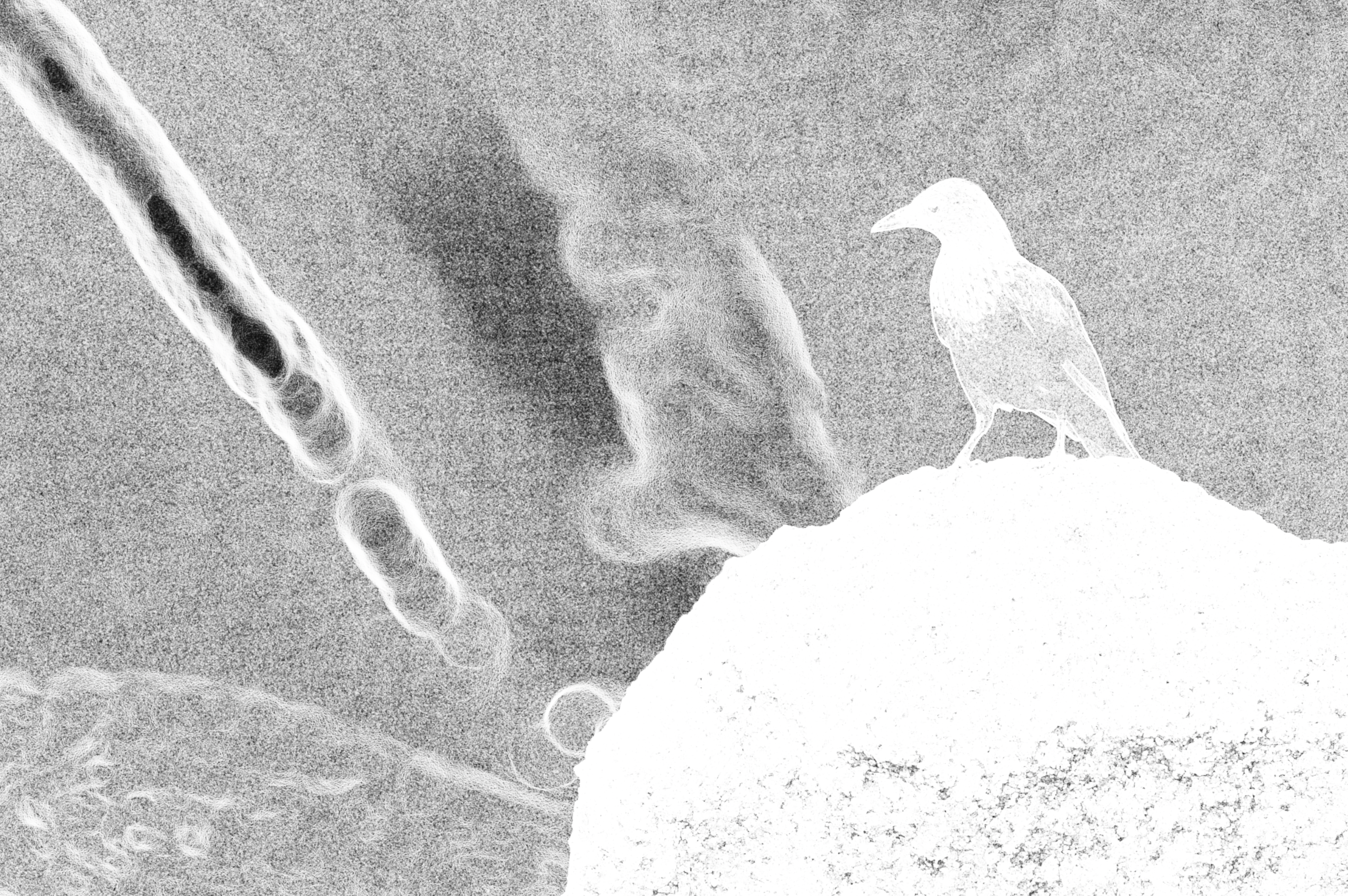 It’s not dramatic, but a few tiny and useful things have happened: the starling’s head pops a little more; there is now a fine coating of grain across the image—but filmlike grain, not boxy ISO noise; and the beam of light pops.